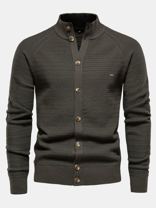 Knitted sweater with structured stand-up collar and buttons | Last day 80% off!