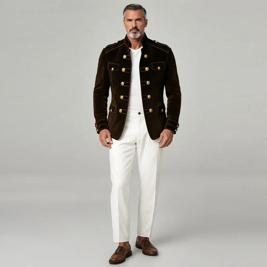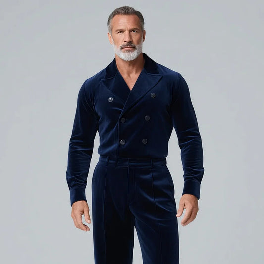 Men's Velvet 2-Piece Set – Double-Breasted Shirt & Trousers